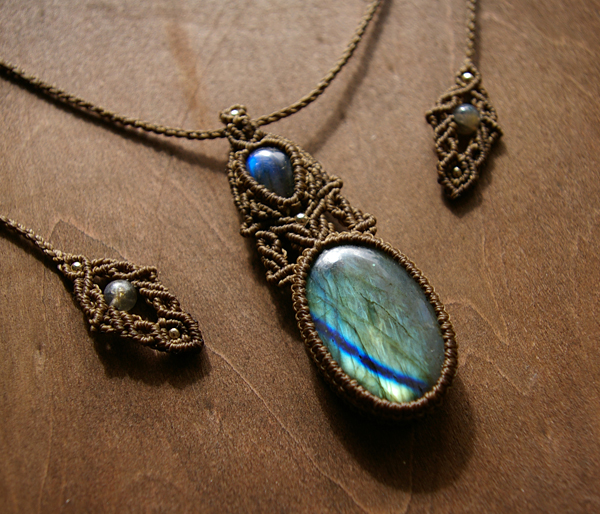 色んな形 ラブラドライトのルースで新作マクラメ編みペンダント制作