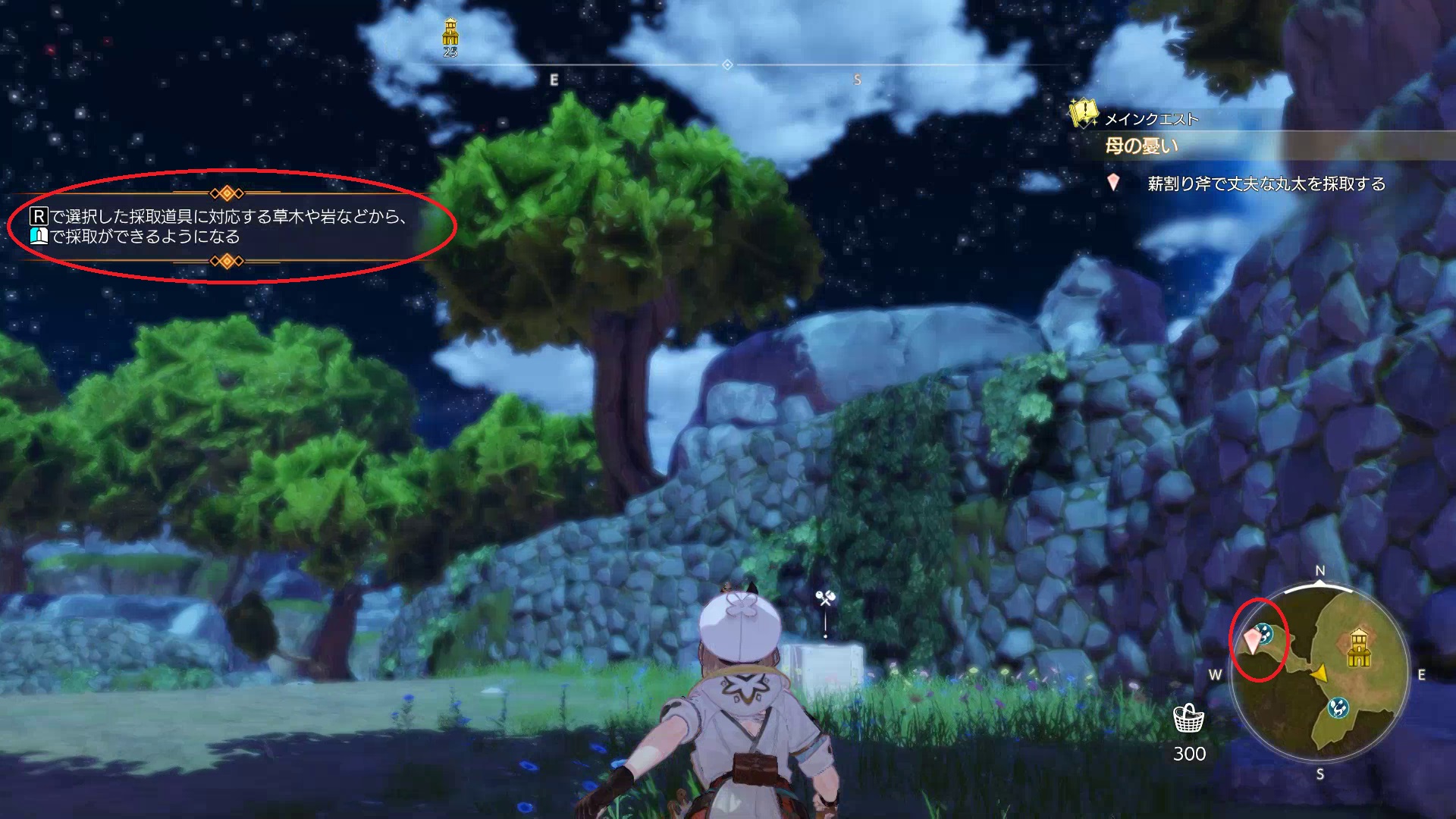 採取道具は、メインメニューの「道具」で装備できる。 採取の際は「R」を長押しして採取道具を選びましょう。
